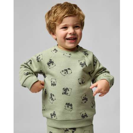 Зелёный свитшот для мальчика Baby Go, декорированный принтом с пандами.