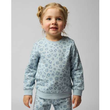 Свитшот для девочки Baby Go голубого цвета с анималистичным принтом.