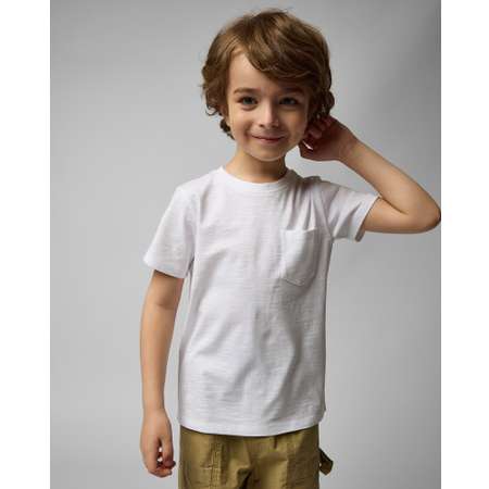 Однотонная футболка для мальчика Futurino белого цвета, с нагрудным карманом.