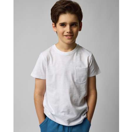 Однотонная футболка для мальчика Futurino белого цвета, с нагрудным карманом.