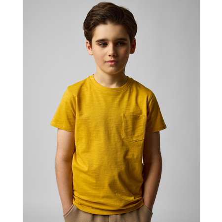 Однотонная футболка для мальчика Futurino горчичного цвета, с нагрудным карманом.