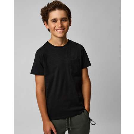 Однотонная футболка для мальчика Futurino чёрного цвета, с нагрудным карманом.