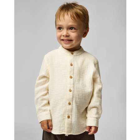 Однотонная текстильная рубашка для мальчика Baby Gо в молочном цвете.