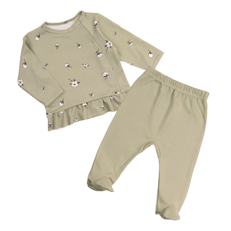 Костюм для малыша состоит из кофточки и штанишек для девочек. Комплект пошит из 100% хлопка-интерлок. Материал мягкий и легкий, не раздражает нежную кожу ребенка и хорошо вентилируется. Эластичные швы приятны телу младенца и не препятствуют его движениям. Кофточка для малыша с длинным рукавом, мягкой обработкой горловины и удобной застёжкой по всей длине. Штанишки для малыша с открытой ножкой на манжетах и поясом-резинкой.