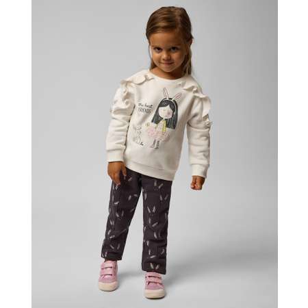 Тёмно-серые брюки для девочки Baby Gо Trend, декорированные принтом с зайчиками.