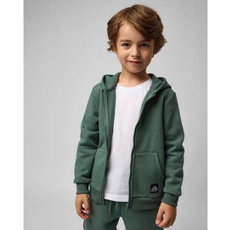 Толстовка для мальчика Futurino тёмно-зелёного цвета, декорирована нашивкой.