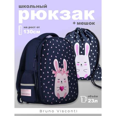 Рюкзак школьный Bruno Visconti синий с эргономичной спинкой Кролик с Сердечком с мешком