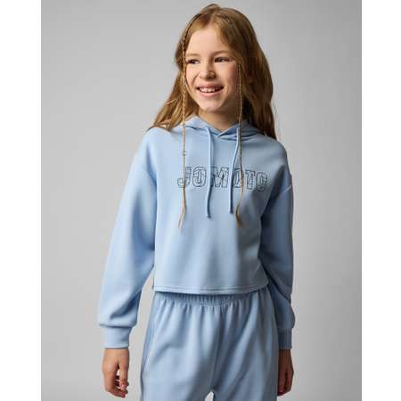 Спортивное укороченное худи для девочки Jomoto голубого цвета с фирменной надписью.