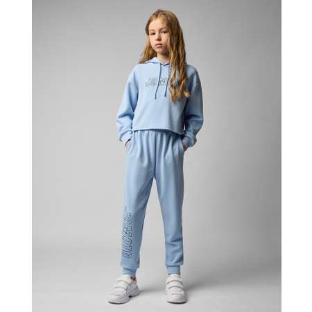 Спортивные брюки для девочки Jomoto голубого цвета с фирменной надписью.