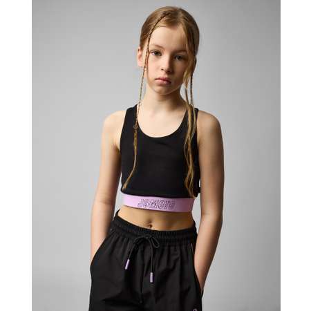 Спортивный топ для девочки Jomoto чёрного цвета с фирменной надписью.