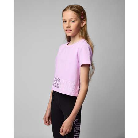 Спортивная укороченная футболка для девочки Jomoto фиолетового цвета с фирменной надписью.