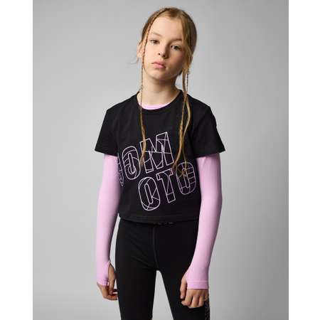 Спортивная укороченная футболка для девочки Jomoto чёрного цвета с фирменной надписью.
