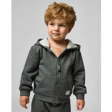 Однотонная толстовка для мальчика Baby Gо тёмно-серого цвета с нашивкой.
