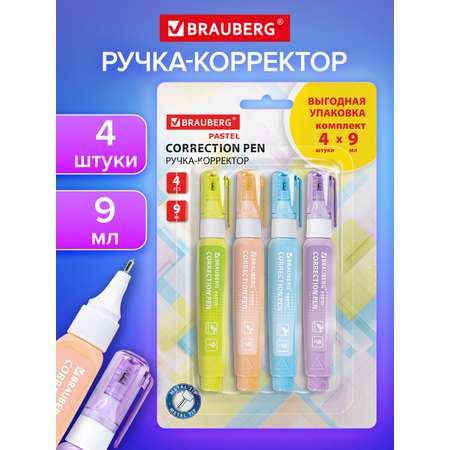Ручка-корректор Brauberg штрих для школы замазка канцелярская 9 мл набор 4 штуки