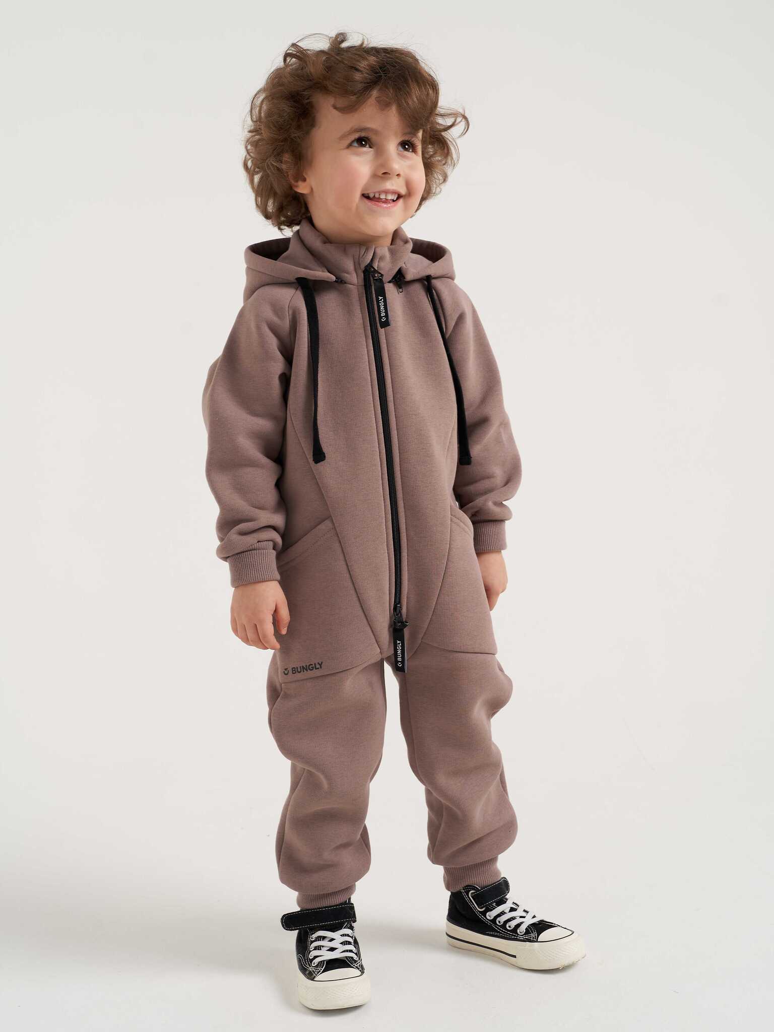 Утепленный детский комбинезон - трансформер с клапаном BUNGLY ( Бангли ) из плотного трикотажа с начесом на изнанке. Капюшон дополнен шнуром для утяжки и защиты от ветра, при желании капюшон можно отстегнуть. Воротник-стойка надёжно защищает шею вашего ребенка от холода и ветра. Застежка на молнию дополнена ветрозащитной планкой по всей длине. Клапан сзади для удобства в туалете. Удлиненные манжеты комбинезона для девочки на рукавах и штанинах "растут" вместе с ребенком (запас 3-4 см).