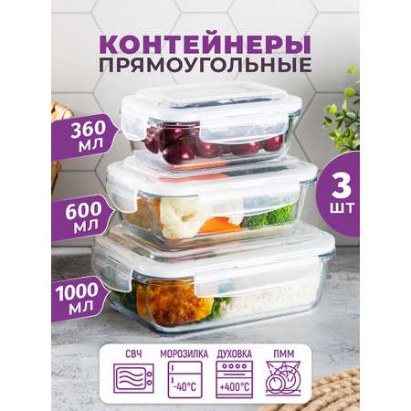 Набор контейнеров Elan Gallery 3 шт 360 мл. 600 мл. 1000 мл прямоугольные с пластиковыми крышками