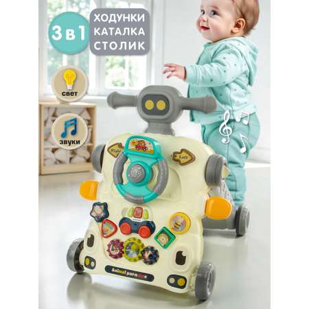 Игрушка 5 в 1, каталка ходунки, столик бизиборд, музыкальная игрушка, баскетбол, сортер.