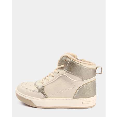 Высокие утеплённые кеды для девочки Futurino бежевого цвета с золотистыми вставками.