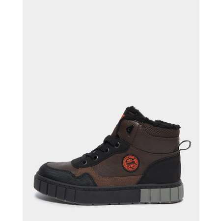 Высокие утеплённые кеды для мальчика Jook коричневого цвета с яркими декоративными элементами.