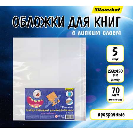 Набор обложек для учебников SILWERHOF с липким слоем 5 шт 233х450мм