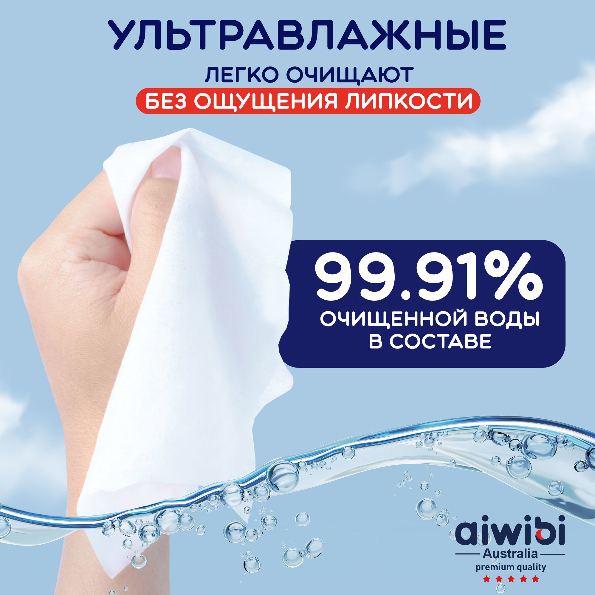 Детские влажные салфетки AIWIBI специально разработаны для нежного очищения кожи малыша и одновременного эффективного ухода. Детские влажные салфетки премиум-класса Aiwibi, содержат 99,91% чистой воды. Салфетки не имеют запаха, благодаря чему подойдут чувствительным малышам. Наши салфетки произведены из высококачественных, натуральных и экологически чистых материалов, которые сохраняют идеальный баланс влажности и прочности салфетки. Делают ежедневную гигиену в любых условиях значительно комфортнее. Незаменимы дома, при смене подгузника, на прогулке, в поликлинике и путешествиях.