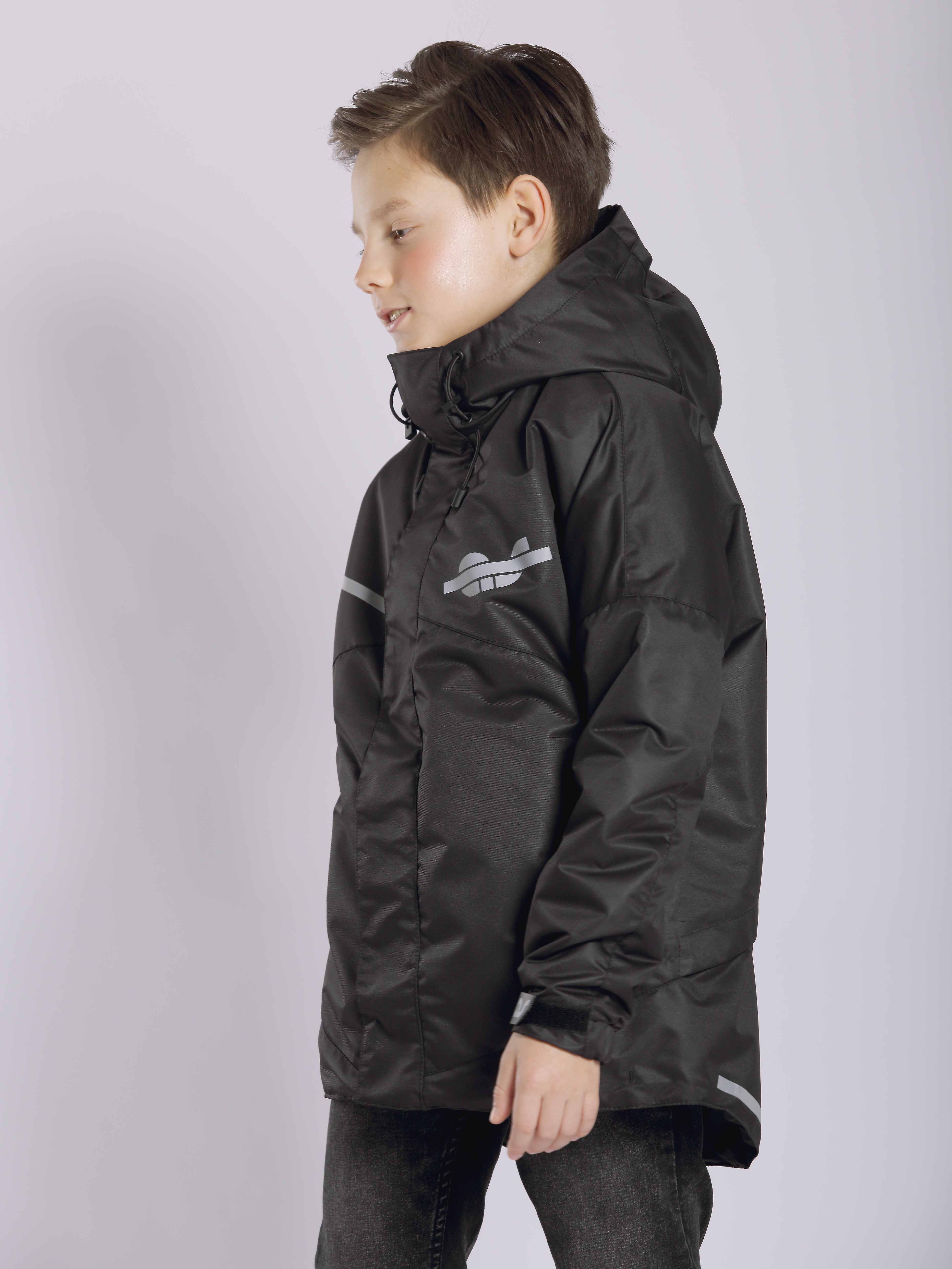 Куртка для мальчика из мембранной ткани 7000/7000 удлинена по спинке. Наружный защитный клапан на липучках по длине молнии. Втачной капюшон с клапанами для утяжки и небольшим козырьком для нужной фиксации по голове и защиты от ветра и дождя. По низу рукава расположен клапан на липучке для регулирования объема. Кулиска с удобными стопперами по низу изделия. Подкладка из микрофлиса, а в рукавах – полиэстер. Потайные карманы на молнии. Утеплитель – Shelter (шелтер) 80 гр. Куртка хорошо сочетается с брюками из мембранной ткани. Подойдет на осень или весну. Рекомендованный температурный режим от 0С до +15С (необходимо учитывать нижние слои одежды, степень активности ребенка, климатические условия региона).