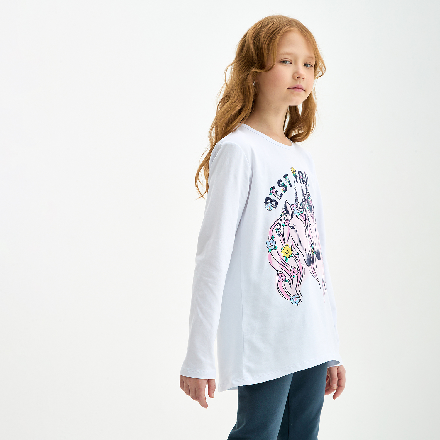 Лонгслив для девочки с ярким красочным принтом станет любимым у вашей девочки. Легкий и практичный – это универсальный выбор на каждый день. Его продуманный крой не стесняет движений во время активных детских игр. Такие кофты и футболки для девочек с длинным рукавом особенно любят подростки, поскольку они идеальны не только как повседневная уличная, но и как домашняя одежда. Изготовленный из высококачественного натурального хлопка, лонгслив для девочки отлично проводит воздух, приятен к телу и комфортен в любой сезон. В прохладную погоду он создает достаточную теплоизоляцию, а в жаркую – защищает от перегрева. За счет эластана в составе материал хорошо тянется, что обеспечивает превосходную посадку по фигуре. Удобная горловина позволяет детям без труда самостоятельно надевать и снимать вещь. Для малышей у размеров 80-98 предусмотрена плечевая застежка на кнопки для более простого надевания. Дизайнерский рисунок, выполненный безопасными водными красками, остается стойким и не выцветает даже после многократных стирок. Ткань при этом полностью воздухопроницаема. Лонг для девочки с удлиненной спинкой и скругленной линией низа легко комбинируется с различными предметами гардероба. Оптимально подходит к лосинам, в сочетании с которыми будет прекрасным нарядным вариантом в садик.