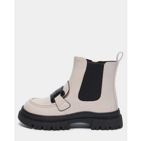 Лаковые полусапоги для девочки Futurino бежевого цвета с декоративными элементами (цепочками).