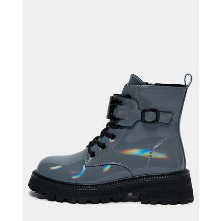 Лаковые ботинки для девочки Futurino серого цвета с голографическим эффектом.