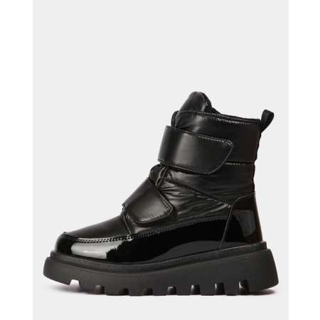 Чёрные ботинки-дутики для девочки Frosterra с лаковыми вставками. Без мембраны.