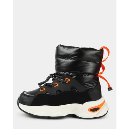 Сапоги-дутики для мальчика Frosterra чёрного цвета с яркими элементами. Без мембраны.
