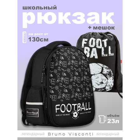 Рюкзак школьный Bruno Visconti Облегченная капсула черный с эргономичной спинкой Футбол с мешком