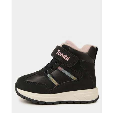Ботинки для девочки Tombi чёрного цвета с блестящими цветными элементами.