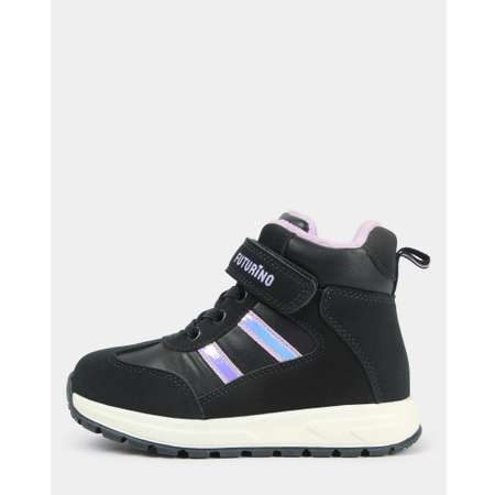 Высокие утеплённые кеды для девочки Futurino тёмно-синего цвета с блестящими элементами.