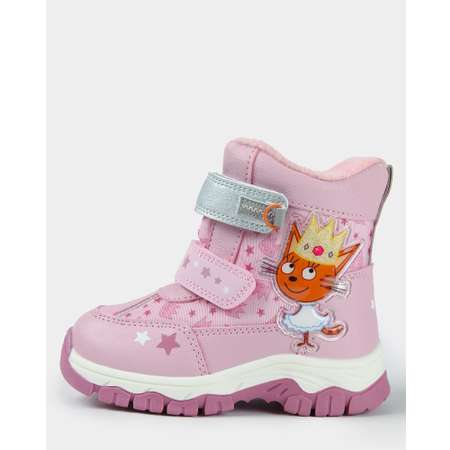 Зимние ботинки для девочки Три кота розового цвета с декором "Карамелька".