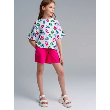 Модный комплект для девочки подростка: футболка, шорты из качественного и приятного на ощупь трикотажа джерси. Высокое содержание хлопка 95%. Благодаря наличию эластана в составе ткани изделие проще в уходе и держит форму. Шорты имеют эластичный пояс со шнурком.
