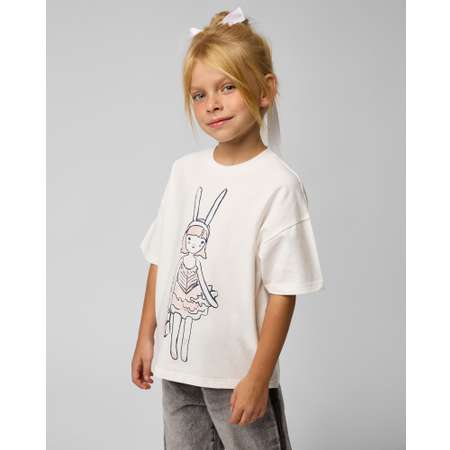 Белая футболка для девочки Futurino Fashion с цветным принтом.