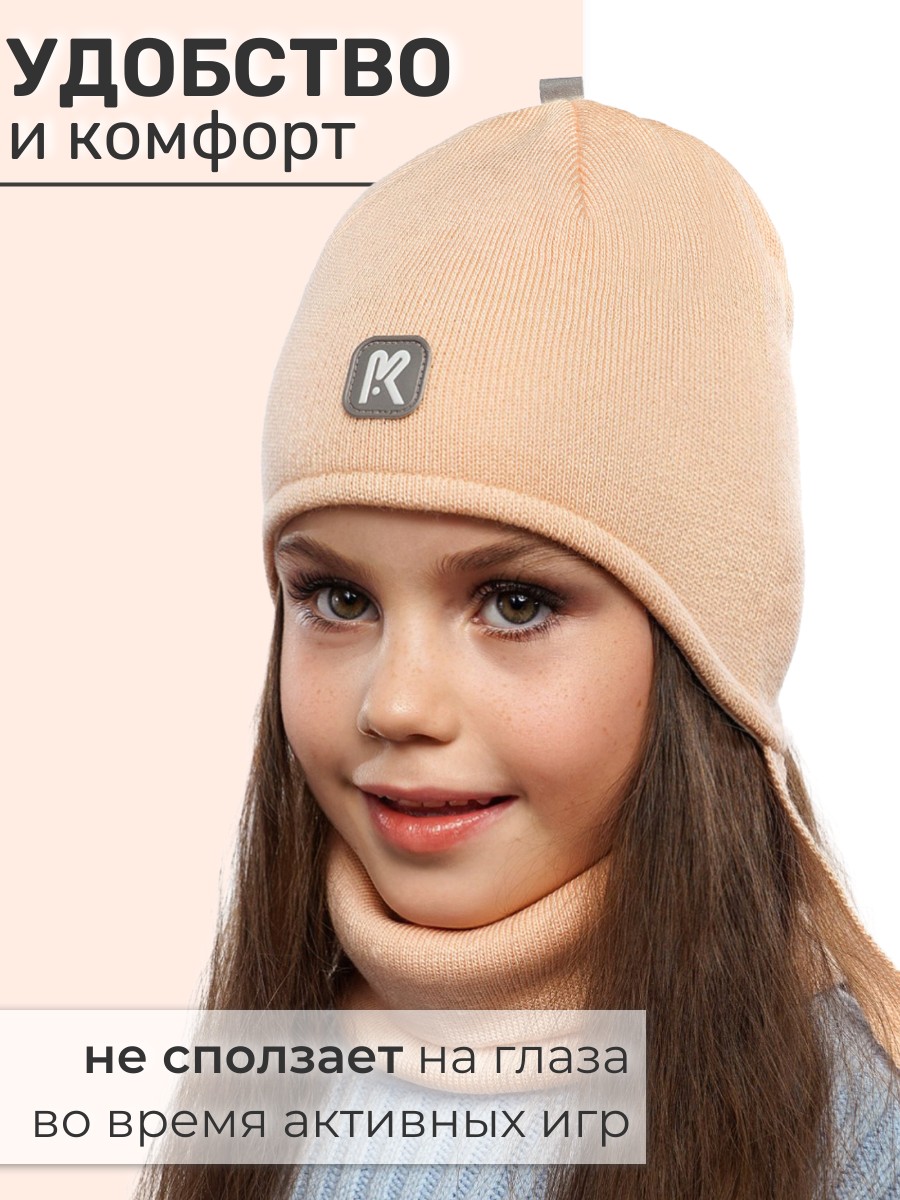 Шапка и снуд ПриКиндер U-Sp232724 Цвет: Персиковый - фото 2