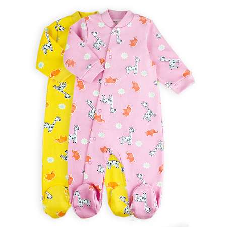Комплект комбинезонов для новорожденных - 2 шт. Материал: трикотаж средней плотности (интерлок) Состав материала: хлопок 100% Цвет: желтый, розовый