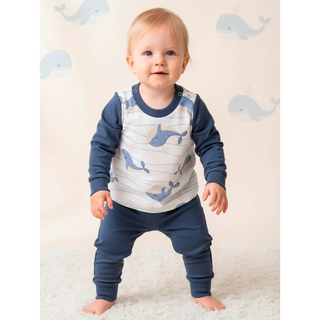 Эластичные швы приятны телу младенца и не препятствуют его движениям. Кофточка с длинным рукавом, мягкой обработкой горловины и удобной застёжкой по всей длине. Ползунки с закрытой ножкой и поясом-резинкой.
