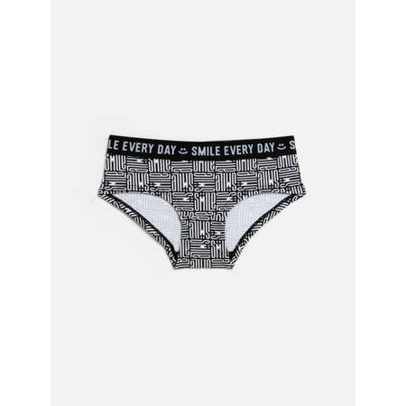Детские трусы семи-боксеры для девочки. Модель с графическим текстовым принтом. Трусы изготовлены из мягкого, эластичного хлопка. Задняя деталь выполнена без шва. По линии пояса расположена жаккардовая резинка с текстом. Топ-бюстгальтер в комплект: 20214110051