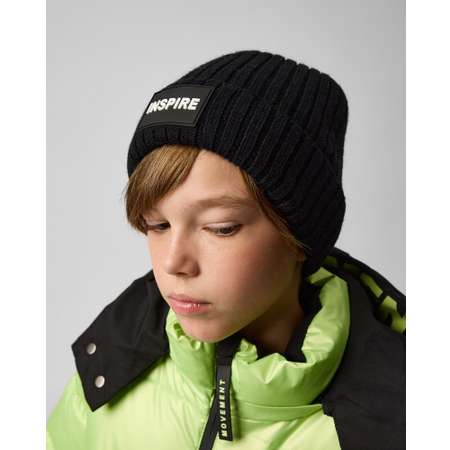 Шапка для мальчика Futurino Fashion чёрного цвета с нашивкой.