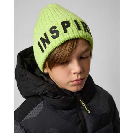 Шапка для мальчика Futurino Fashion салатового цвета с надписью.