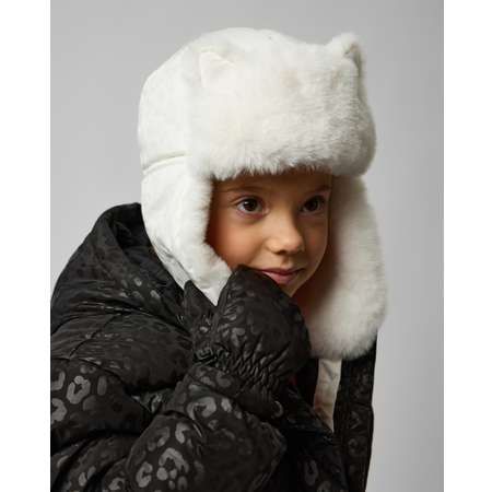 Текстильные утеплённые варежки для девочки Futurino Fashion чёрного цвета с леопардовым принтом.