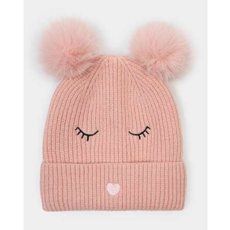 Розовая шапка для девочки Futurino с помпонами из искусственного меха.