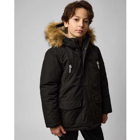 Зимняя куртка-парка для мальчика Futurino Cool чёрного цвета.