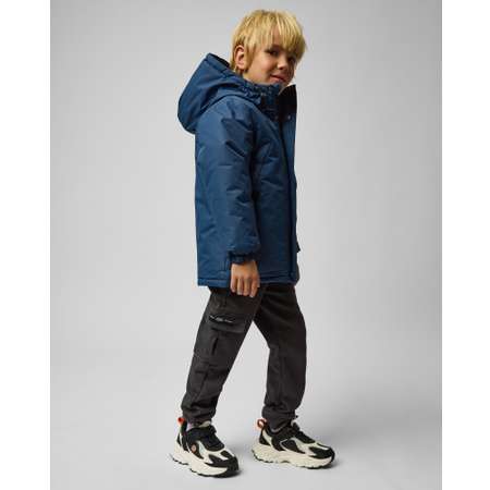Куртка для мальчика Futurino Cool тёмно-синего цвета с надписями и фирменной нашивкой.