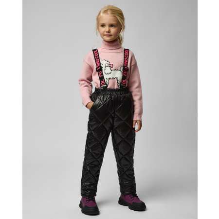 Стёганные утеплённые брюки для девочки Futurino Cool чёрного цвета, на бретелях.