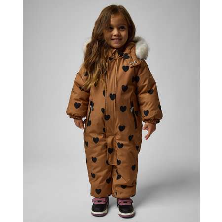 Зимний коричневый комбинезон для девочки Baby Go с сердечками.