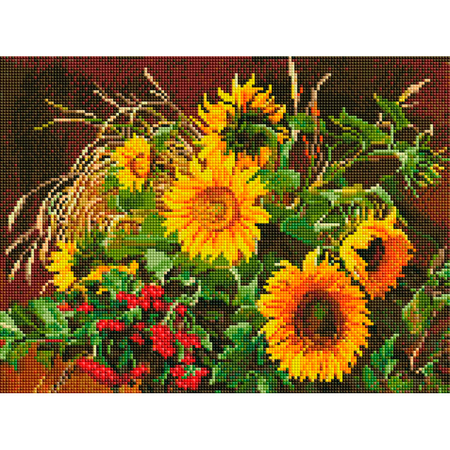 Алмазная мозаика Белоснежка «Букет с подсолнухами и калиной» . На подрамнике . Мозаика 30 х 40 см